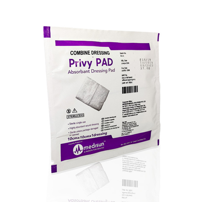 A combined Dressing Pad is used to pack a giant bleeding wound after initial bleeding controlled by direct pressure. Combine Dressing Pad protects a patient's wound and reduces the risk of infection. It should be applied with pressure and secured with a bandage. Each sterile dressing pad consists of highly absorbent layers of thick fleece enclosed in a soft, comfortable, non-woven fabric to prevent pressure areas from forming. Combine Dressing Pad is sterile.