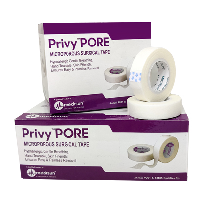 Privypore is made from non-woven paper and used to secure a dressing on the skin and devices. Its made from paper and non-rubber latex. Thus it is breathable and light on the skin. It is also hypoallergenic; therefore, it does not irritate the skin.