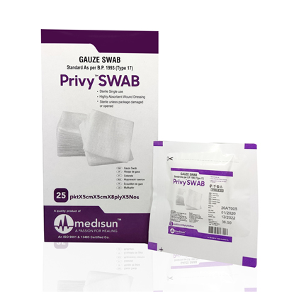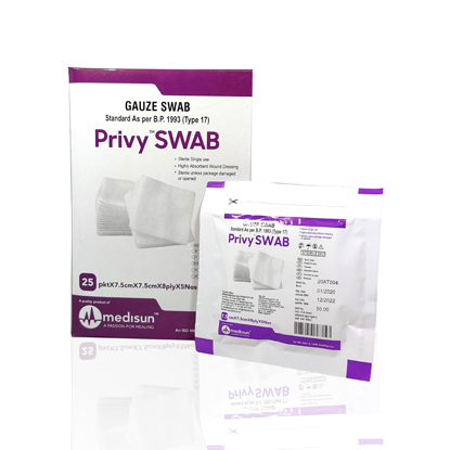 PrivyswabCotton Gauze Sponge is made with 100% cotton. The cotton construction allows the gauze sponge to be used in wound dressing, cleaning prepping, and packing applications.